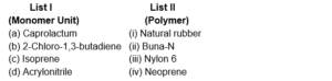 Match List I with List II.