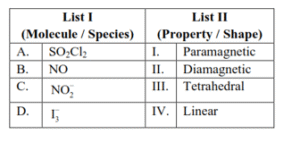 Match List I with List II :