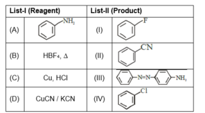 Match List I with List II [JEE (Main) 8-4-23_S1] [HA_E] Ea$y is reacted with reagents in List I to form products in List II.
