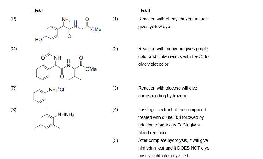 Match the compounds in List-I with the appropriate observations in List-II and choose the correct option.