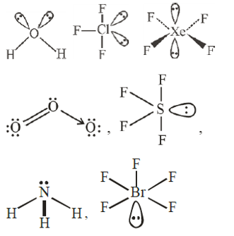 $\mathrm{O}_3, \mathrm{H}_2 \mathrm{O}, \mathrm{SF}_4, \mathrm{ClF}_3, \mathrm{NH}_3, \mathrm{BrF}_5, \mathrm{XeF}_4$