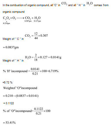 On combustion 0.210 g of an organic compound containing $\mathrm{C}, \mathrm{H}$ and O gave $0.127 \mathrm{gH}_2 \mathrm{O}$ and $0.307 \mathrm{gCO}_2$ . The percentages of hydrogen and oxygen in the given organic compound respectively are: