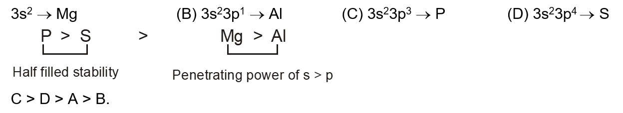 (A) $3 \mathrm{~s}^2$ (B) $3 s^2 3 P^1$ (C) $3 s^2 3 p^3$ (D) $3 s^2 3 p^4$