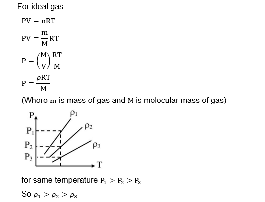 P-T diagram of an ideal gas having three different densities $\rho_1, \rho_2, \rho_3$ (in three different cases) is shown in the figure. Which of the following is correct :