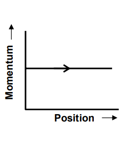 Phase space diagrams are useful tools in analyzing all kinds of dynamical problems. They are especially useful in studying the changes in motion as initial position and momenum are changed. Here we consider some simple dynamical systems in onedimension. For such systems, phase space is a plane in which position is plotted along horizontal axis and momentum is plotted along vertical axis. The phase space diagram is $x(t)$ vs. $p(t)$ curve in this plane. The arrow on the curve indicates the time flow. For example, the phase space diagram for a particle moving with constant velocity is a straight line as shown in the figure. We use the sign convention in which positon or momentum upwards (or to right) is positive and downwards (or to left) is negative.