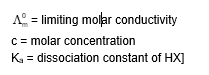 Plotting $1 / \mathrm{L}_{\mathrm{a}}$ against $\mathrm{c} / \mathrm{mm}$ for aqueous solutions of a monobasic weak acid $(\mathrm{HX})$ resulted in a straight line with $y$-axis intercept of $P$ and slope of $S$. The ratio $P / S$ is-