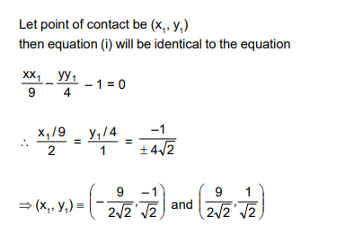 Tangents are drawn to the hyperbola $\frac{x^2}{9}-\frac{y^2}{4}=1$, parallel to the straight line $2 x-y=1$. The points of contacts of the tangents on the hyperbola are