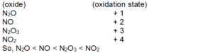 $\mathrm{N}_2 \mathrm{O}<\mathrm{NO}<\mathrm{N}_2 \mathrm{O}_3<\mathrm{NO}_2$