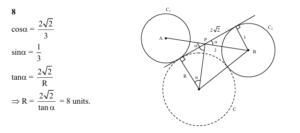 The centres of two circles $C_1$ and $C_2$ each of unit radius are at a distance of 6 units from each other. Let $P$ be the mid point of the line segment joining the centres of $\mathrm{C}_1$ and $\mathrm{C}_2$ and C be a circle touching circles $\mathrm{C}_1$ and $\mathrm{C}_2$ externally. If a common tangent to $\mathrm{C}_1$ and C passing through P is also a common tangent to $\mathrm{C}_2$ and C , then the radius of the circle C is