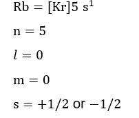 The correct set of four quantum numbers for the valence electron of rubidium atom (Z=37) is: