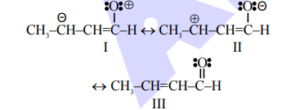The correct stability order of the following resonance structures of $\mathrm{CH}_3-\mathrm{CH}=\mathrm{CH}-\mathrm{CHO}$ is