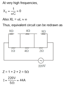 The effective current I in the given circuit at very high frequencies will be ____A.
