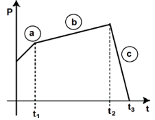The figure represents the momentum time ( $p-t$ ) curve for a particle moving along an axis under the influence of the force. Identify the regions on the graph where the magnitude of the force is maximum and minimum respectively? If $\left(t_3-t_2\right)