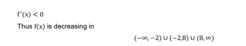 decreases in $(-\infty,-2) \cup(-2,8) \cup(8, \infty)$
