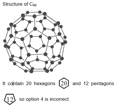 The INCORRECT statement regarding the structure of $\mathrm{C}_{60}$ is :