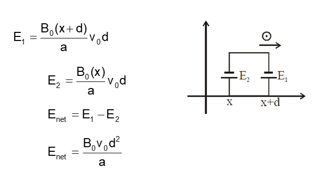 The magnetic field in a region is given by $\overrightarrow{\mathrm{B}}-=\mathrm{B}_0\left(\frac{\mathrm{x}}{\mathrm{a}}\right) \hat{\mathrm{k}}$. A square loop of side d is placed with its edges along the x and y axes. The loop is moved with a constant velocity $\overrightarrow{\mathrm{v}}=\mathrm{v}_0 \hat{\mathrm{i}}$. The emf induced in the loop is: