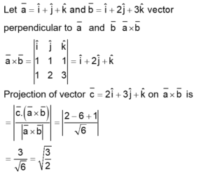 The magnitude of the projection of the vector $2 \hat{i}+3 \hat{j}+\hat{k}$ on the vector perpendicular to the plane containing the vectors $\hat{i}+\hat{j}+\hat{k}$ and $\hat{i}+2 \hat{j}+3 \hat{k}$ is: