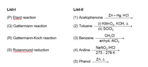 The major products obtained from the reactions in List-II are the reactants for the named reactions mentioned in List-I. Match List-I with List-II and choose the correct option.