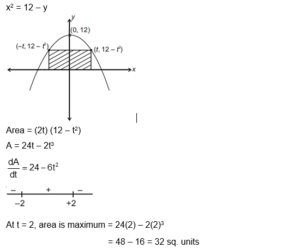 The maximum area (in sq. units) of a rectangle having its base on the $x$-axis and its other two vertices on the parabola, $y=12-x^2$ such that the rectangle lies inside the parabola, is