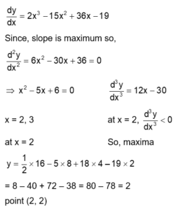 The maximum slope of the curve $y=\frac{1}{2} x^4-5 x^3+ 18 x^2-19 x$ occurs at the point