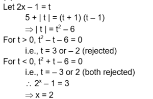 The number of real roots of the equation $5+\left|2^x-1\right|=2^x\left(2^x-2\right)$ is :