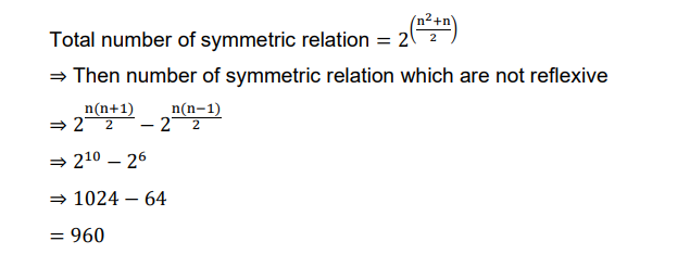 The number of symmetric relations defined on the set $\{1,2,3,4\}$ which are not reflexive is