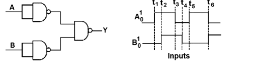 The output waveform of the given logical circuit for the following inputs A and B as shown below, is