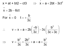 where $a, b$ and $c$ are constants. When the particle attains zero acceleration, then its velocity will be :
