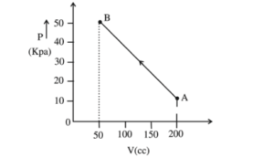 The pressure of a gas changes linearly with volume from A to B as shown in figure. If no heat is supplied to or extracted from the gas then change in the internal energy of the gas will be