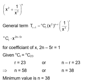 The smallest natural number n , such that the coefficient of $x$ in the expansion of $\left(x^2+\frac{1}{x^3}\right)^n$ is ${ }^{\mathrm{n}} \mathrm{C}_{23}$, is :