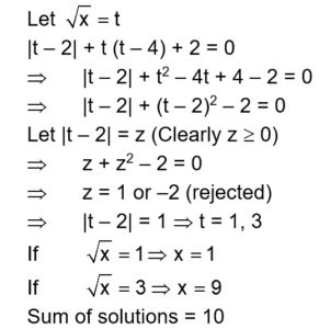 The sum of the solutions of the equation $|\sqrt{x}-2|+\sqrt{x}(\sqrt{x}-4)+2=0,(x>0)$ is equal to: