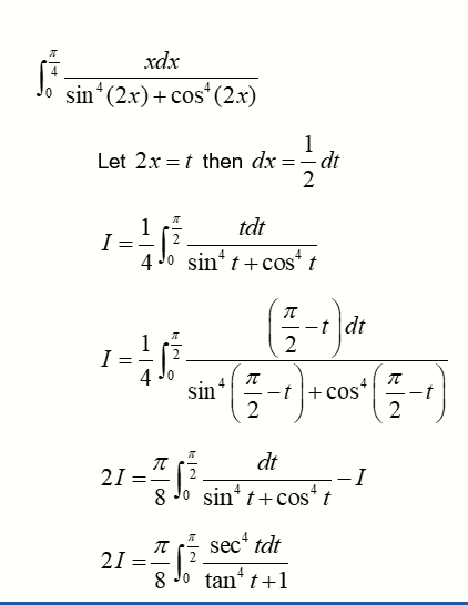 The value of the integral $\int_0^{\frac{\pi}{4}} \frac{x d x}{\sin ^4(2 x)+\cos ^4(2 x)}$ equals :