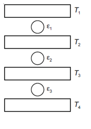 Three Carnot engines operate in series between a heat source at a temperature $T_1$ and a heat sink at temperature $T_4$ (see figure). There are two other reservoirs at temperature $T_2$ and $T_3$, as shown, with $T_1>T_2> T_3>T_4$. The three engines are equally efficient if