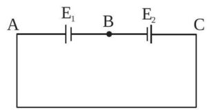 $\begin{aligned} & V_C-2-4 \times 1=V_B \\ & V_C-V_B=6 \mathrm{~V} \\ & =6 \mathrm{~V}\end{aligned}$
