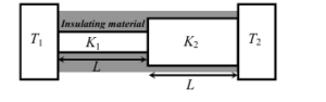 Two conducting cylinders of equal length but different radii are connected in series between two heat baths kept at temperatures $T_1=300 \mathrm{~K}$ and $T_2=100 \mathrm{~K}$, as shown in the figure. The radius of the bigger cylinder is twice that of the smaller one and the thermal conductivities of the materials of the smaller and the larger cylinders are $K_1$ and $K_2$ respectively. If the temperature at the junction of the two cylinders in the steady state is $200 K$, then $K_1 / K_2=$ $\_\_\_\_$ .