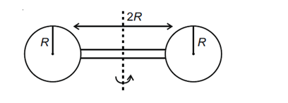 Two identical spherical balls of mass M and radius R each are stuck on two ends of a rod of length 2R and mass M (see figure). The moment of inertia of the system about the axis passing perpendicularly through the centre of the rod is :
