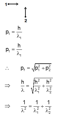 Two particles move at right angle to each other. Their de Broglie wavelengths are $\lambda_1$ and $\lambda_2$ respectively. The particles suffer perfectly inelastic collision. The de Broglie wavelength $\lambda$, of the final particle, is given by: