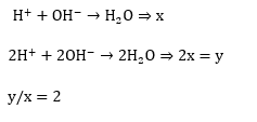 When equal volume of 1 MHCl and $1 \mathrm{MH}_2 \mathrm{SO}_4$ are separately neutralised by excess volume of 1 M NaOH solution. X and ykJ of heat is liberated respectively. The value of $y / x$ is $\_\_\_\_$ .