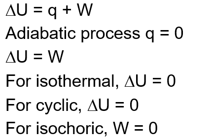 Isochoric process : $\Delta \mathrm{U}=\mathrm{q}$